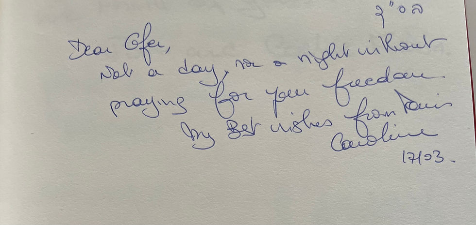 Dear Ofer, a daily thought for you, to give you strength and keep you hopeful! Michel For Arzenou France