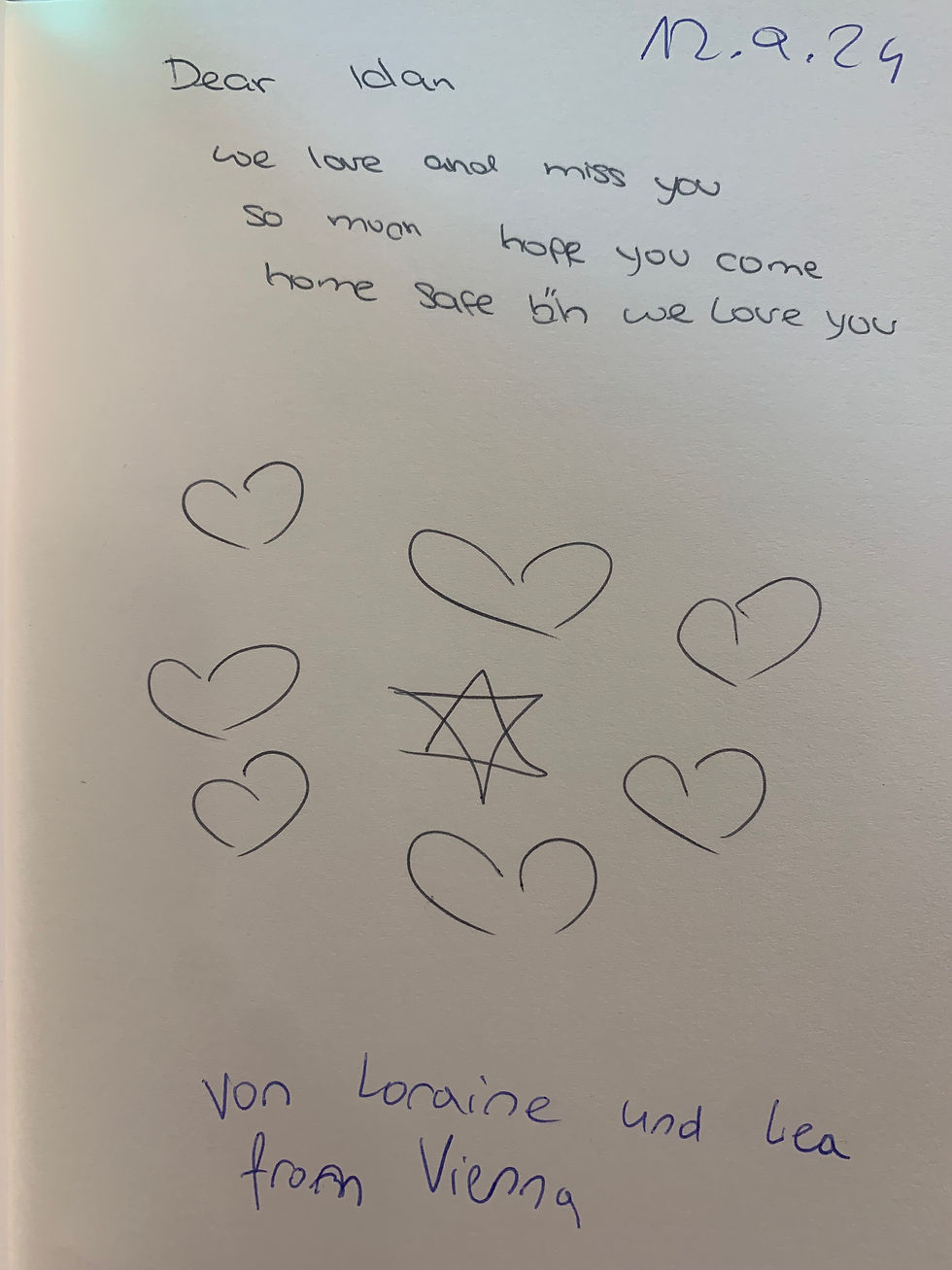 Dear Idan, I ran into your father at the Forum offices in Tel Aviv and met your sister by chance at a restaurant in Amsterdam. I am praying for your aafe return so one day, I will be able to meet you too. Hang in there, our thoughts are with you.